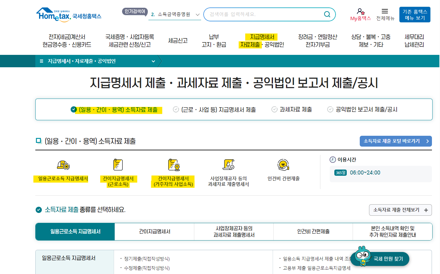 홈택스 로그인 후 지급명세서 자료제출에서 가능합니다.