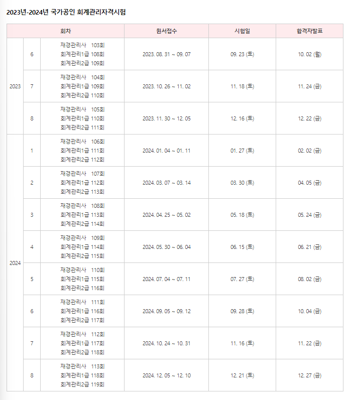 또한 이번 남은 일정이 촉박하게 느껴지신다면 2024년에도 시험일정이 있으니 참고하시면 되겠습니다.