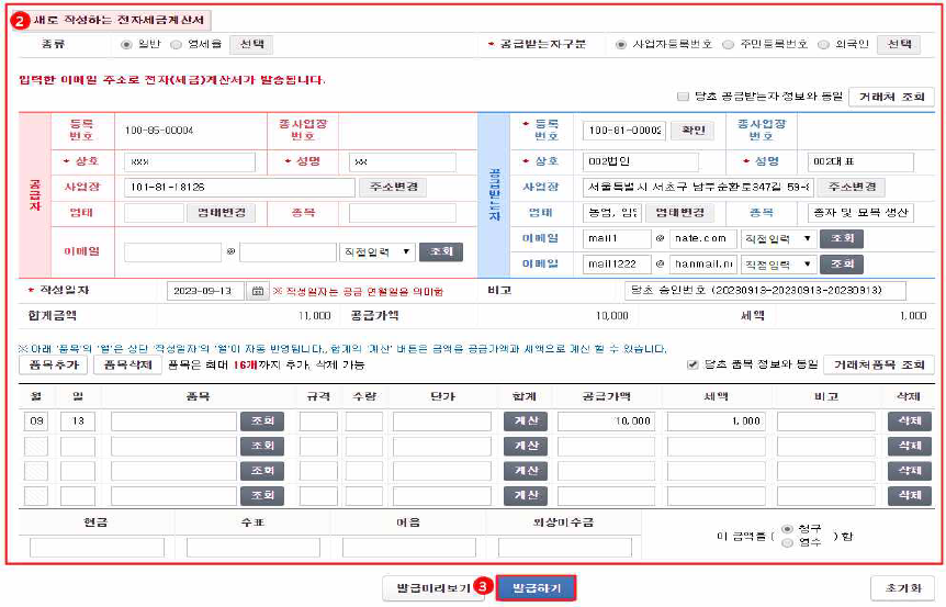 그 다음 새로 작성하는 전자세금계산서에 당초에 잘못작성되었던 부분을 새로 작성하시어 발급하시면 됩니다.
