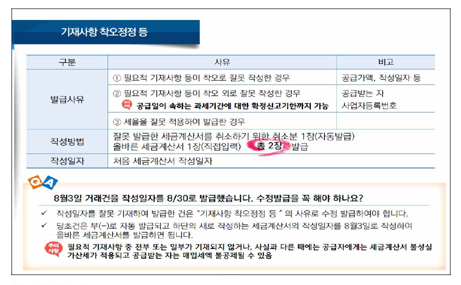 세금계산서의 필수기재사항을 잘못 작성하였을때, 수정발급하는 방법입니다.