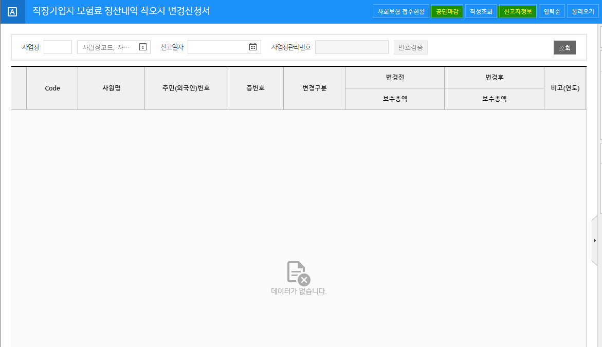 신고자 정보를 작성하여 공단마감 후 공단신고를 할 수 있습니다.