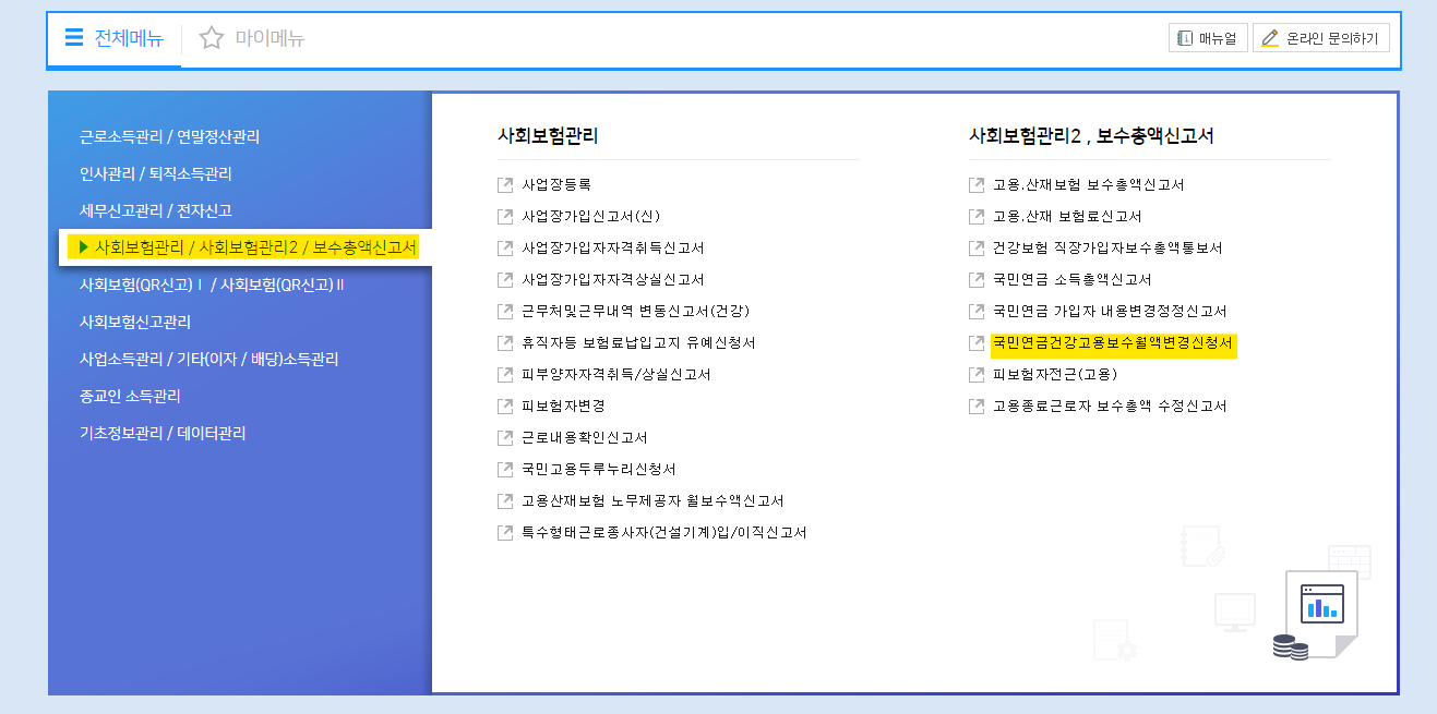 여기서 변경구분에 보수총액을 선택 후 금액을 작성하여 신고하시면 됩니다.