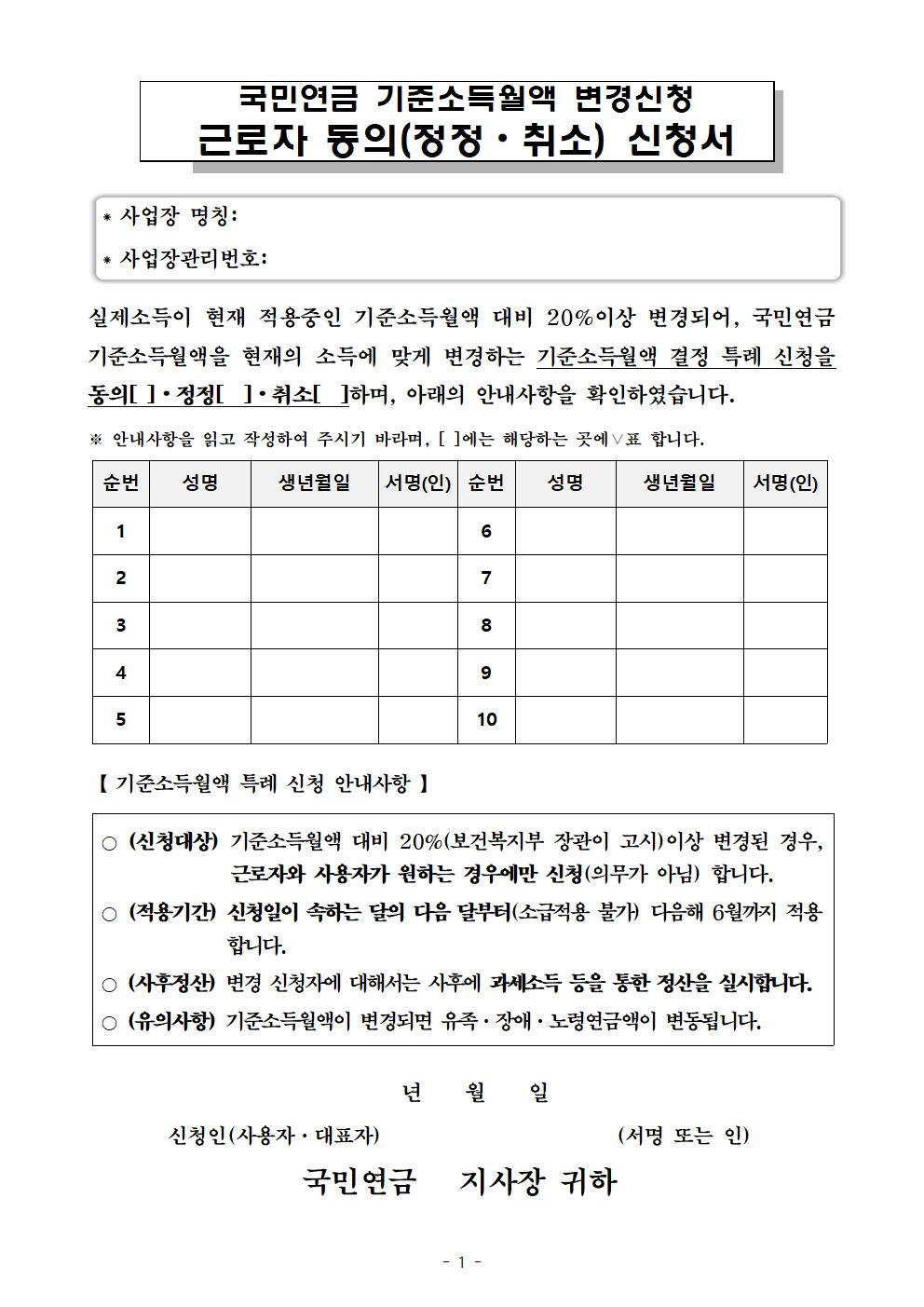 -국민연금 기준소득월액 변경신청 근로자동의신청서