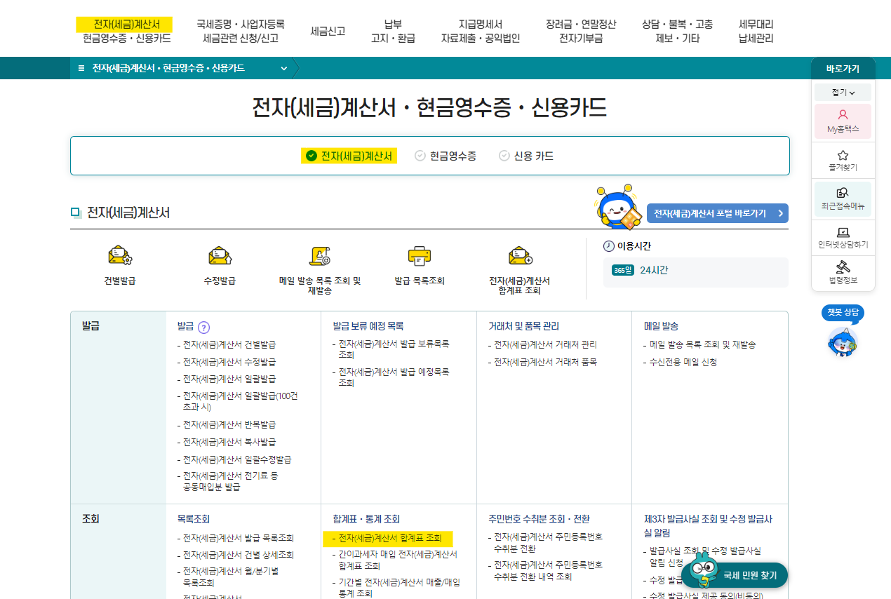 똑같은 방법으로 계산서도 조회 후 금액 확인 후 마감.
