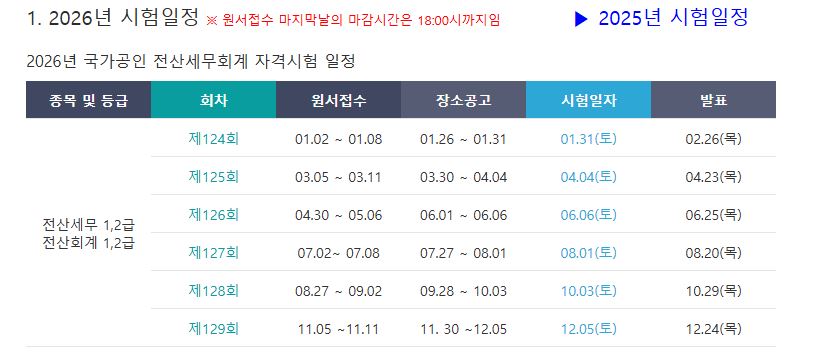 4. 2026년 전산세무 시험일정은?