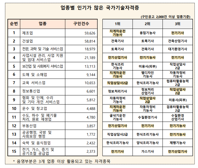 구인 공고에서 가장 많이 요구하는 국가기술자격증
