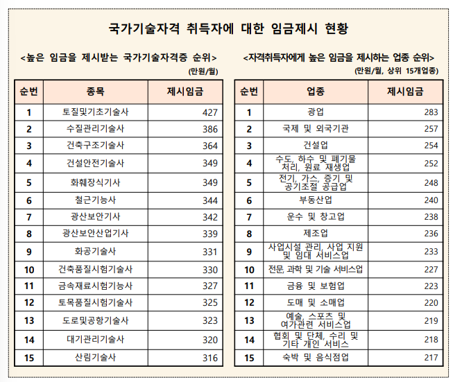 기업에서 가장 많은 임금을 제시한 국가기술자격증