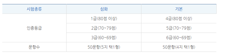 시험 종류로는 심화와 기본, 두 가지로 나뉜다.