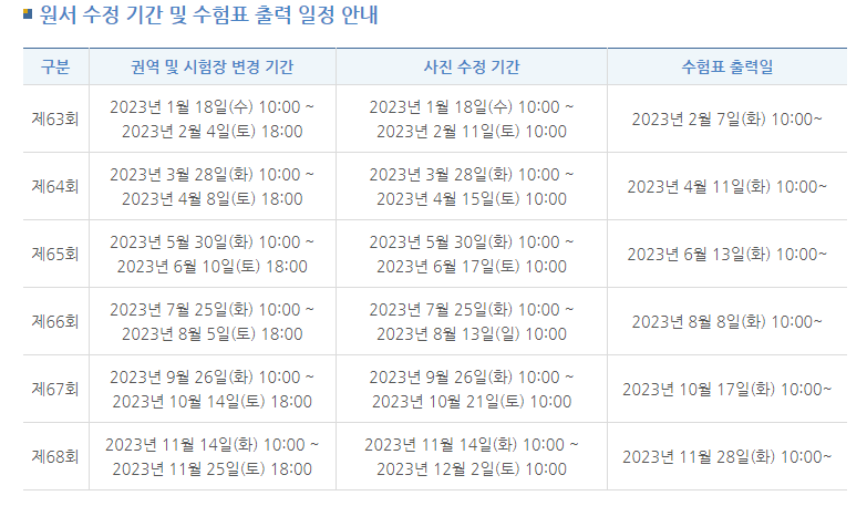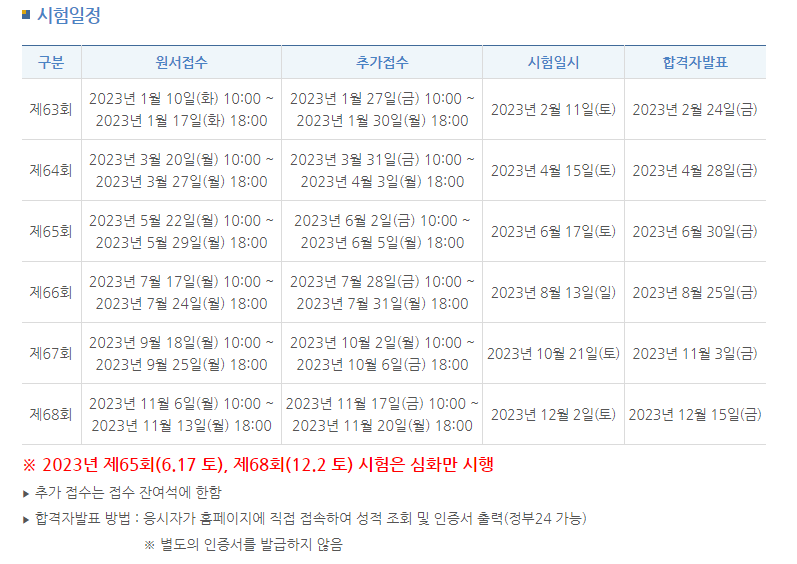 앞으로는 68회의 시험만 남아있다. 하지만 마지막 남은 날의 시험은 심화만 시행한다고 안내되어 있다.