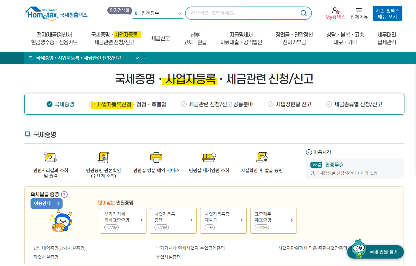 여기서 사업자등록신청 및 정정신고를 할 수 있다.
