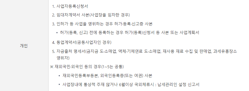 [개인사업자 신고시 필요서류]
