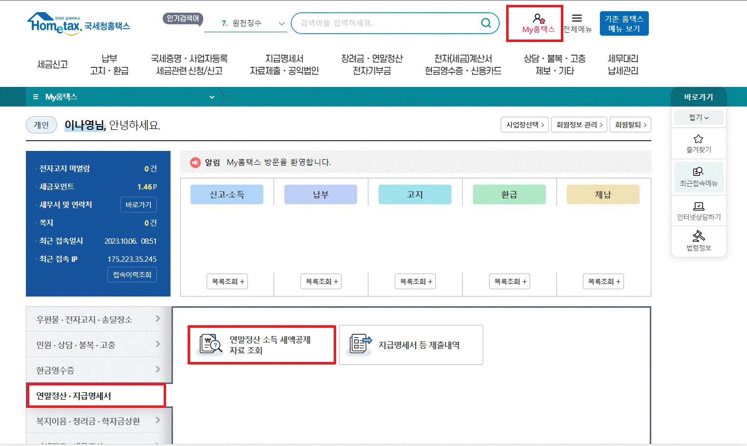 *지금 연말이 되니 연말정산 미리보기 서비스를 제공하고 있다. 이용해보아도 좋을 것 같다.