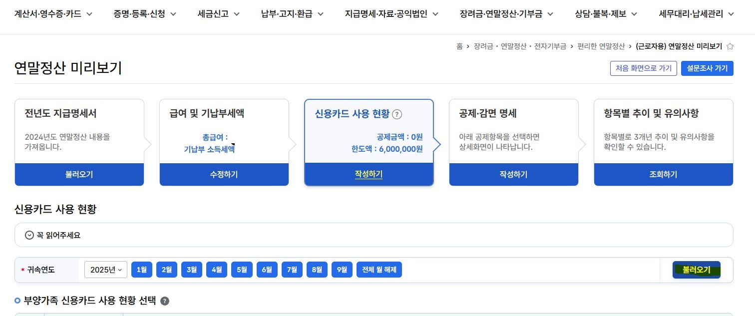 - 카드·현금영수증 등 사용내역이 자동으로 조회되며, 특히 1월 ~ 9월분 내역이 우선 제공됩니다.